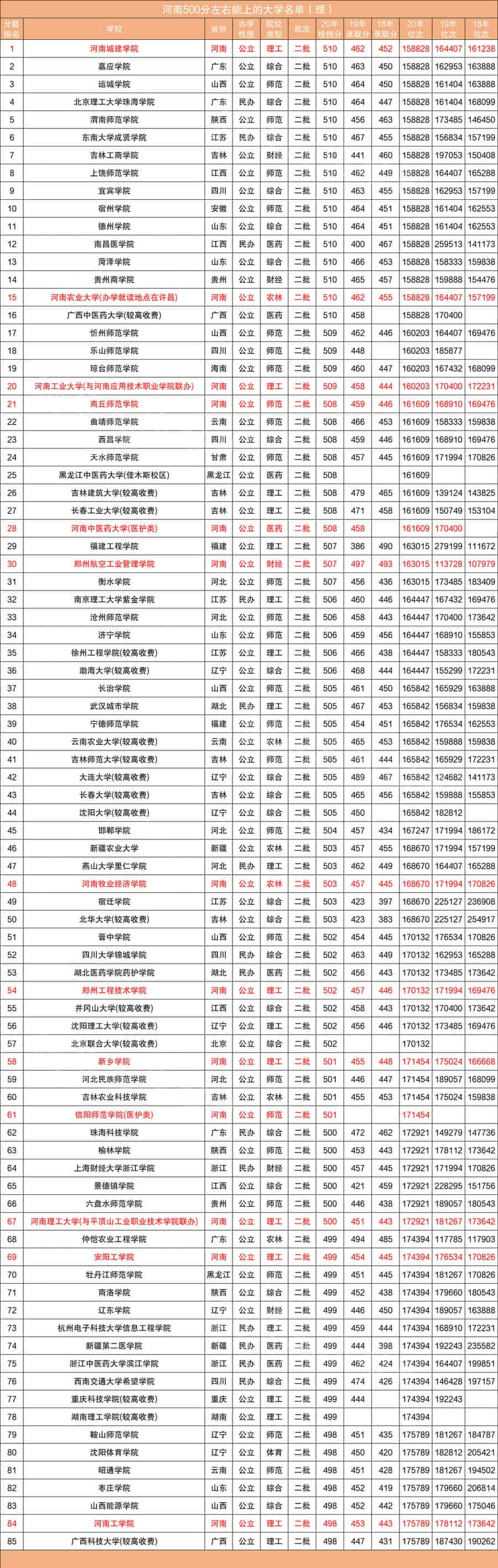 以高考大省河南省来说,500分左右能上哪些大学?其实河南每年的高考都是很激烈的,不仅是因为高考人数多,最重要的原因还是因为各高校在河南的招生人数都是有限制的,所以也间接的导致了河南考生的压力大。