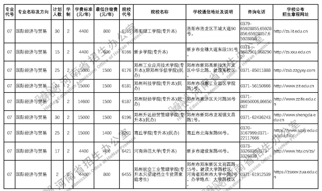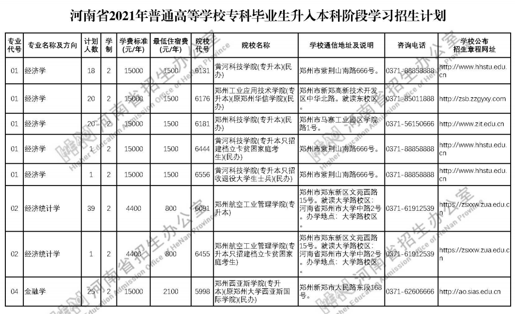 河南2021年普通专升本招生计划 院校名单及招生人数