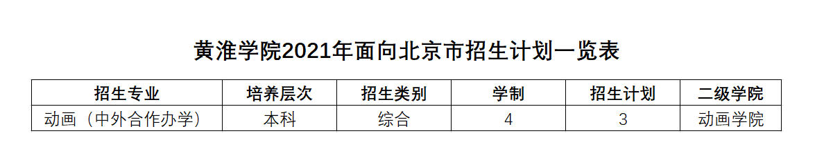 黄淮学院2021年面向北京市招生计划一览表