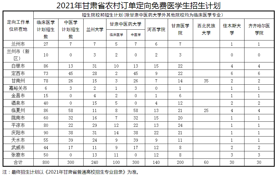 2021年甘肃省农村订单定向免费医学生招生计划已经发布,小编整理了相关内容,来看一下吧!