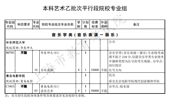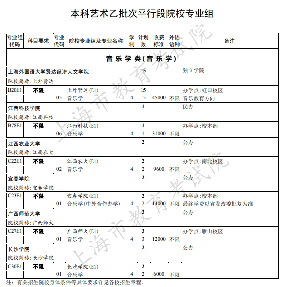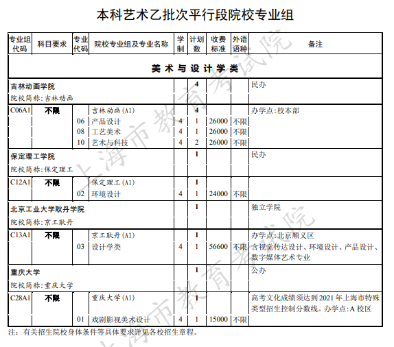 上海2021本科艺术类乙批次平行段招生专业及计划 时间:2021-07-15 09:23 招生计划 2021年上海市普通高校招生本科艺术类乙批次的平行段招生专业及计划(含缺额计划)已经公布了,下面是小编整理的相关信息,赶快来看吧!本科艺术类乙批次招生计划