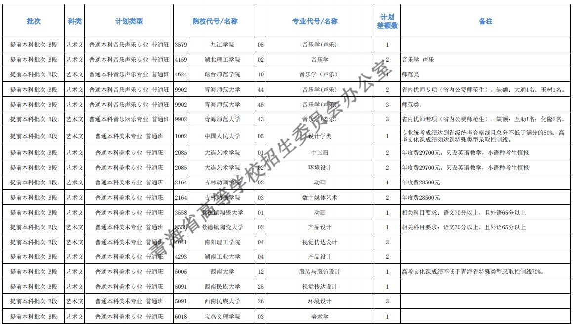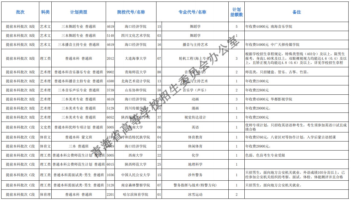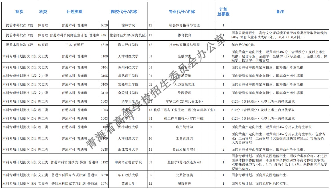 2021青海本科提前批征集志愿招生计划及专业公布,具体来看一下!