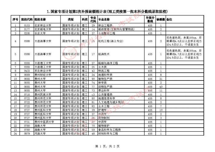 国家专项计划第1次补报志愿平行投档后,部分院校因生源不足或考生不服从专业调剂退档,尚有缺额,现继续网上补报。考生可根据缺额情况,及时补报志愿。本次补报设置6个平行志愿,网上补报志愿时间为7月16日21:30至17日12:00。