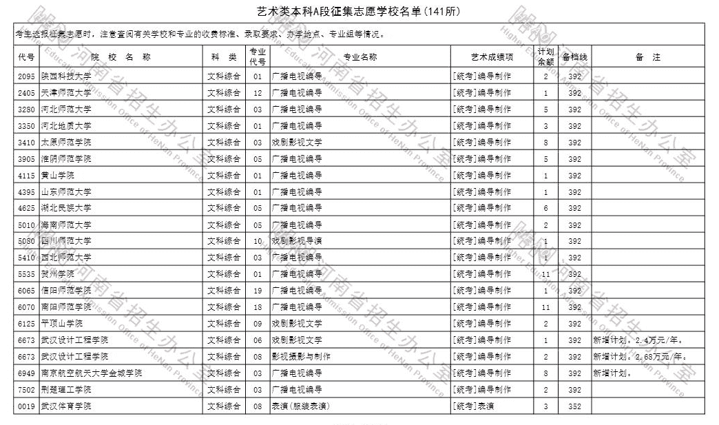 河南省2021年艺术类本科A段征集志愿招生计划 时间:2021-07-18 10:05 招生计划 河南省招生办公室公布了2021年艺术类本科A段征集志愿招生计划,下面是各院校的征集计划,一起来看吧!艺术类本科A段征集志愿招生计划