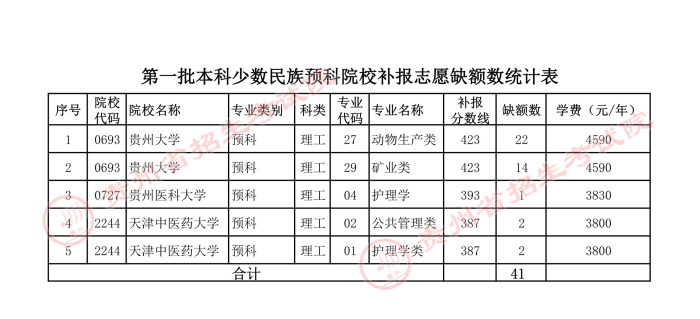 2021贵州本科一批少数民族预科院校补报志愿计划