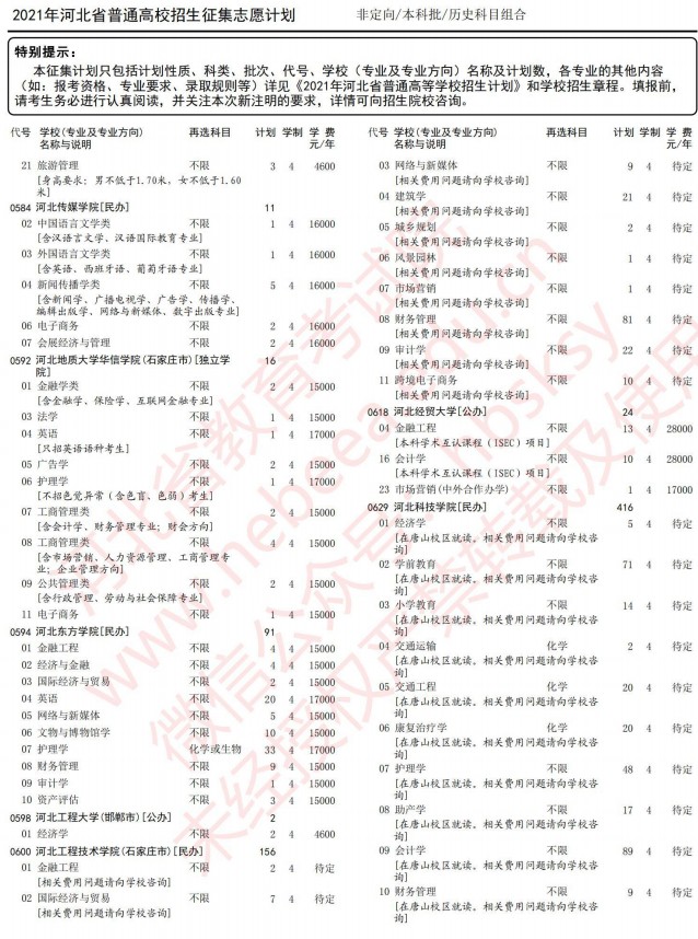 2021河北高考本科批征集志愿计划(历史) 时间:2021-07-27 15:31 招生计划 近日,河北省教育考试院公布了2021河北高考本科批征集志愿计划,本次征集填报志愿的时间为7月27日12时至7月30日17时。未查到录取结果的考生根据自身情况填报征集志愿。2021河北高考本科批征集志愿计划(历史)