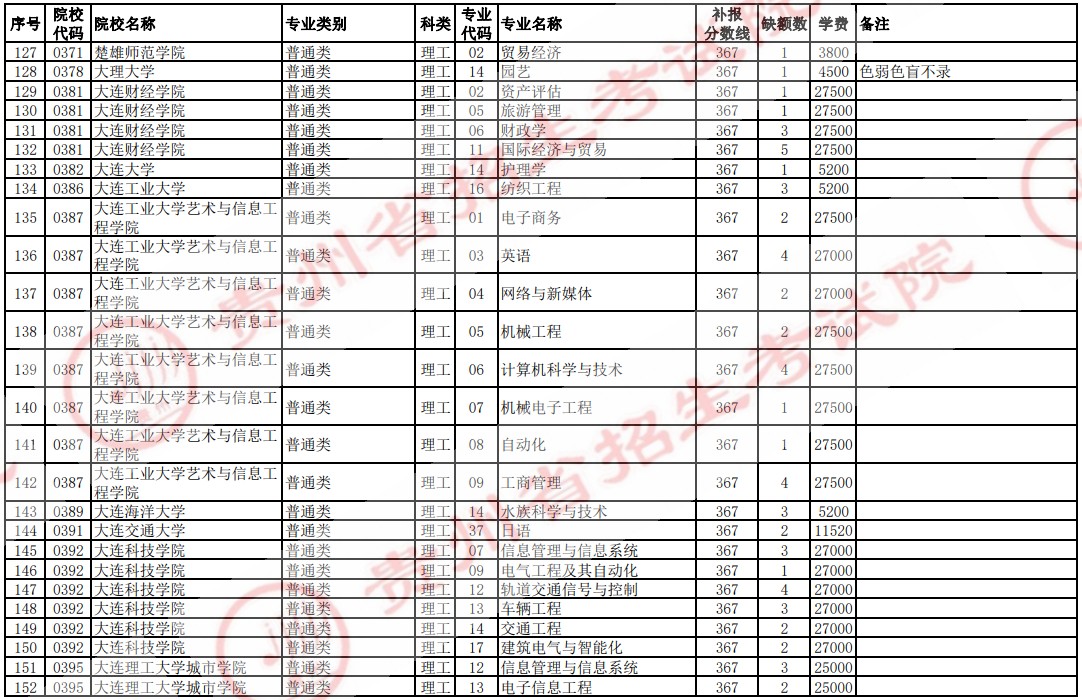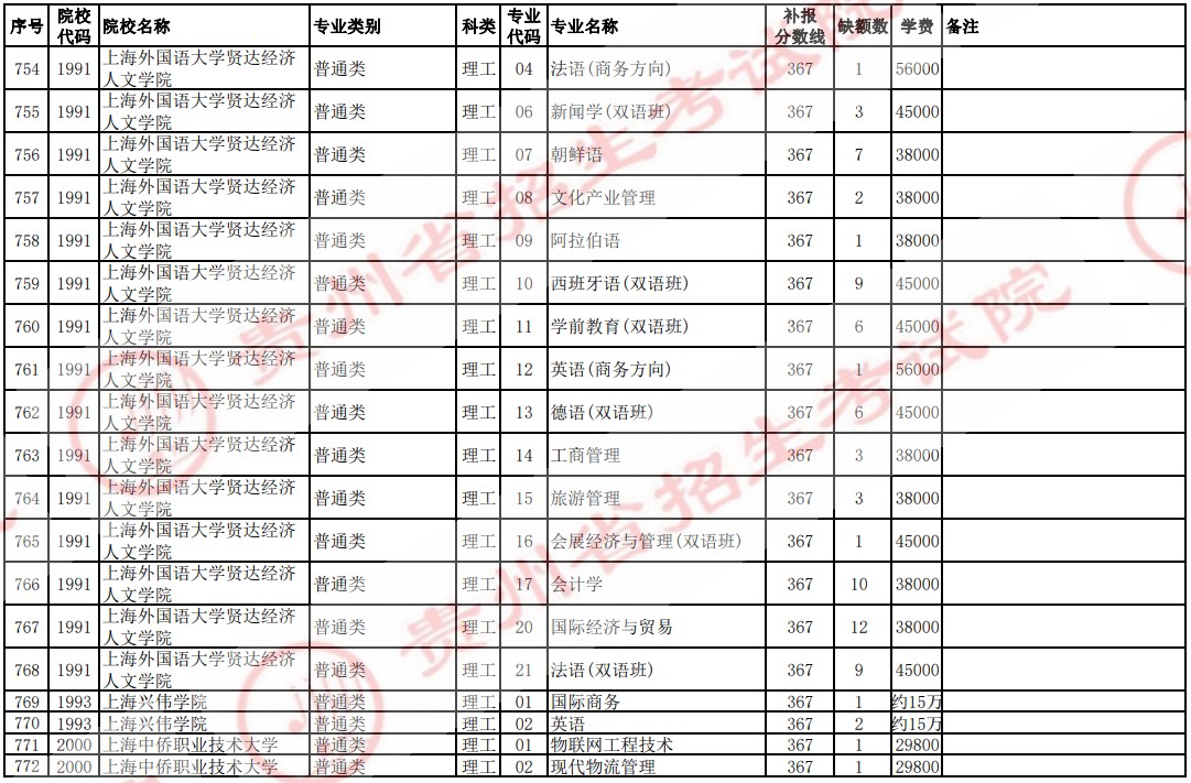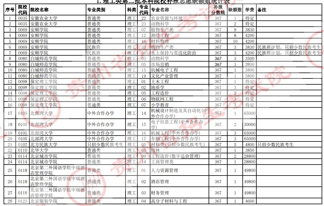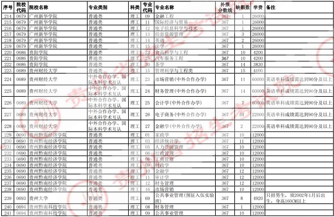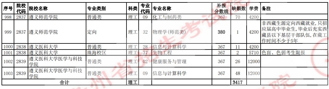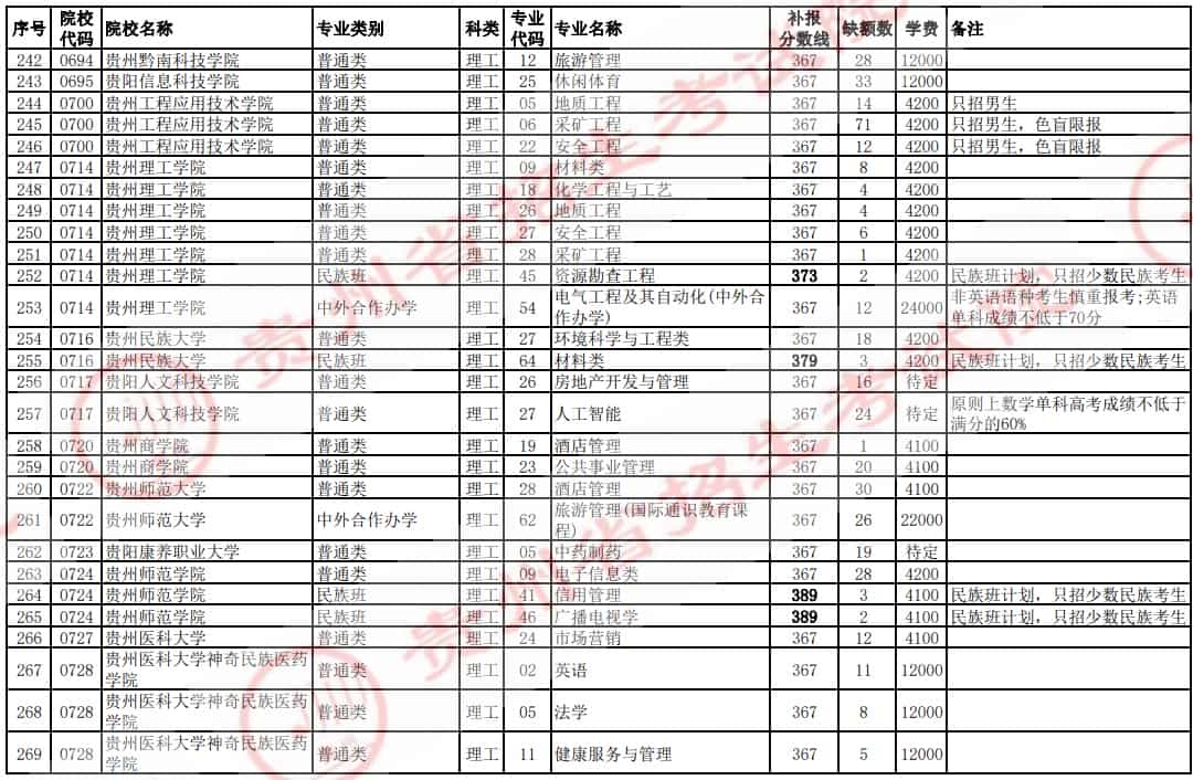 2021贵州高考本科二批院校补报志愿计划(理工)