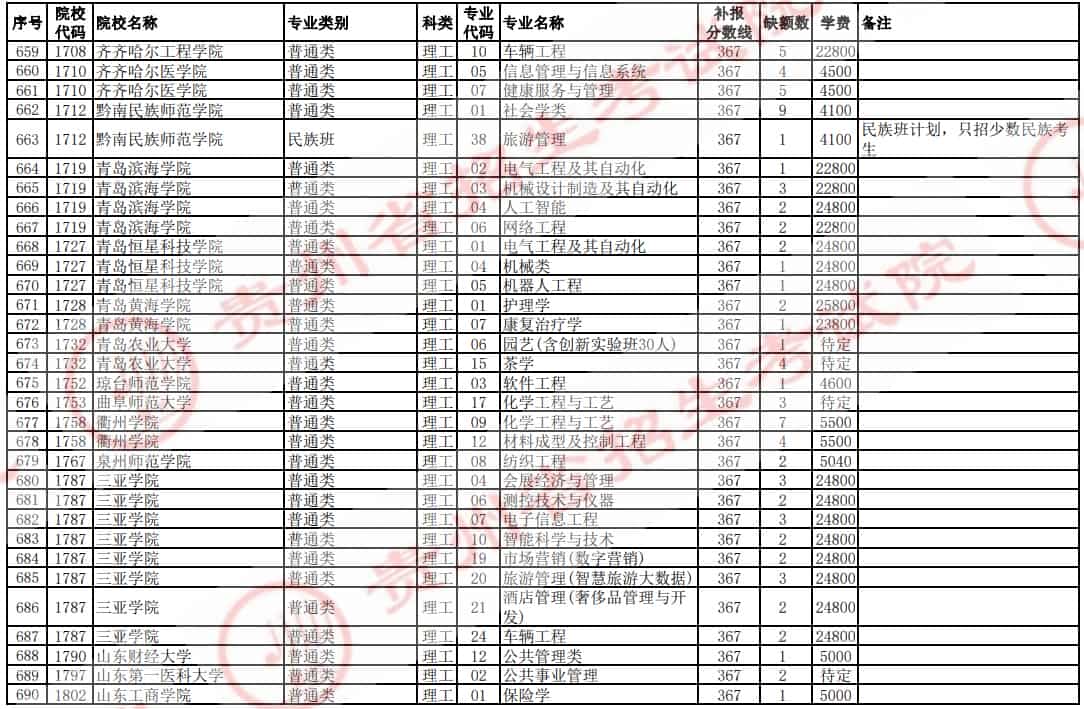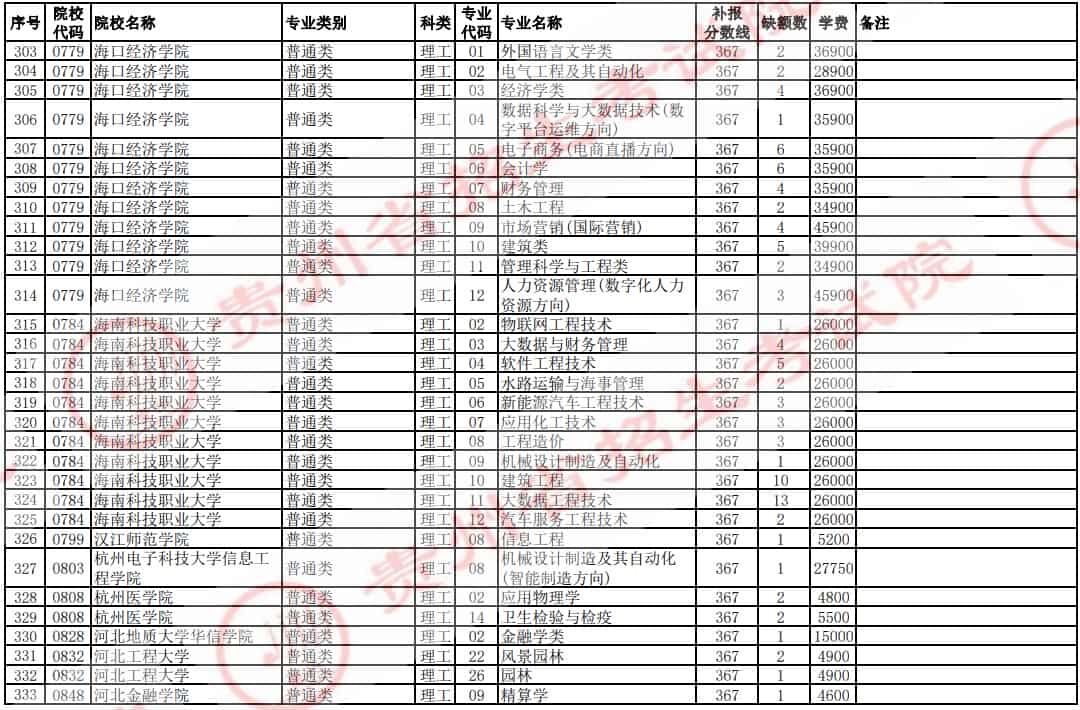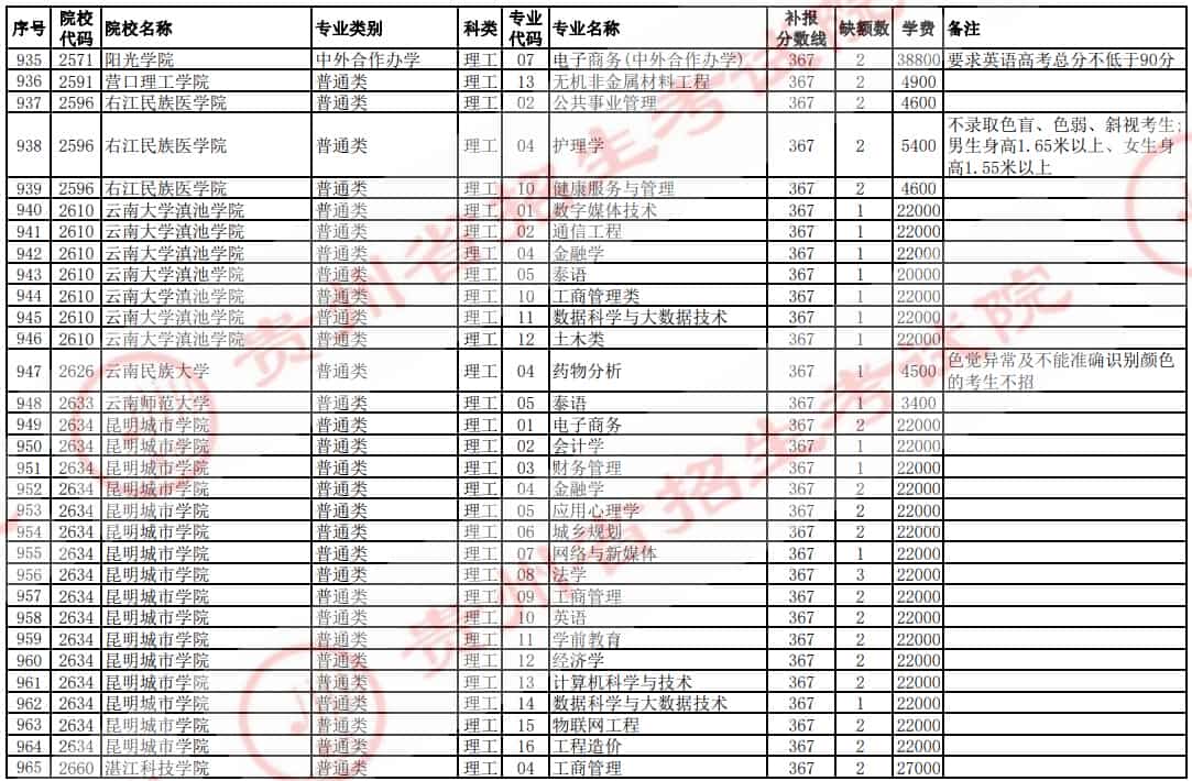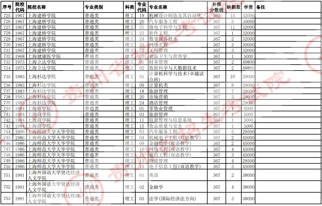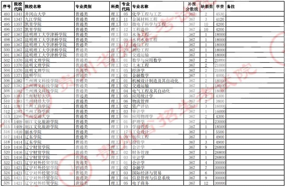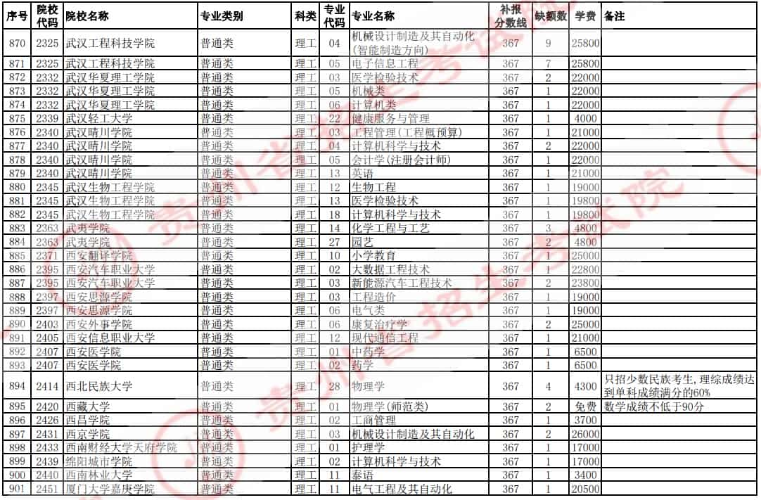 2021贵州高考本科二批院校补报志愿计划(理工)