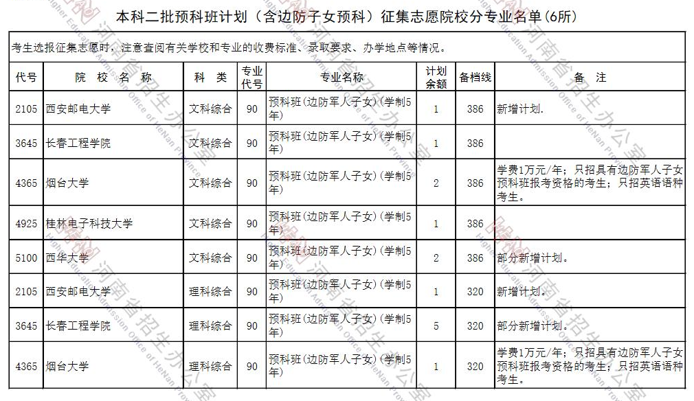 2021河南本科二批预科班计划(含边防子女预科)征集志愿招生计划 时间:2021-08-02 08:56 招生计划 河南省2021年本科二批预科班计划(含边防子女预科)征集时间为8月2-3日,下面是各院校的征集志愿招生计划,一起来看!本科二批预科班计划(含边防子女预科)征集计划
