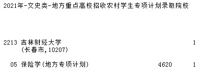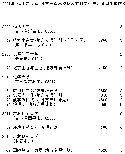 2021吉林高考地方专项计划征集志愿计划(第二轮)