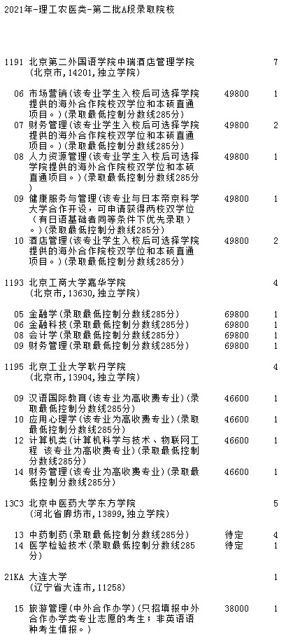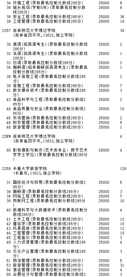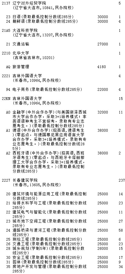 2021吉林高考第二批A段征集志愿计划(第二轮)