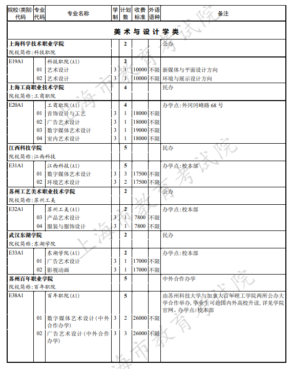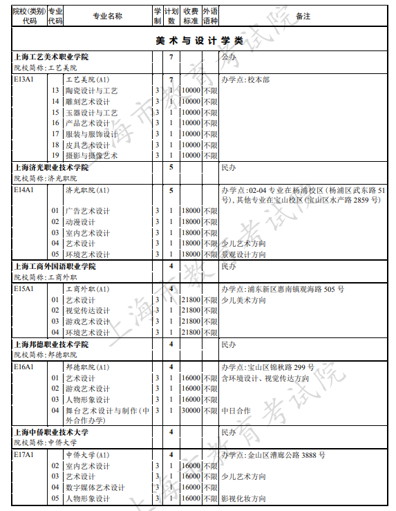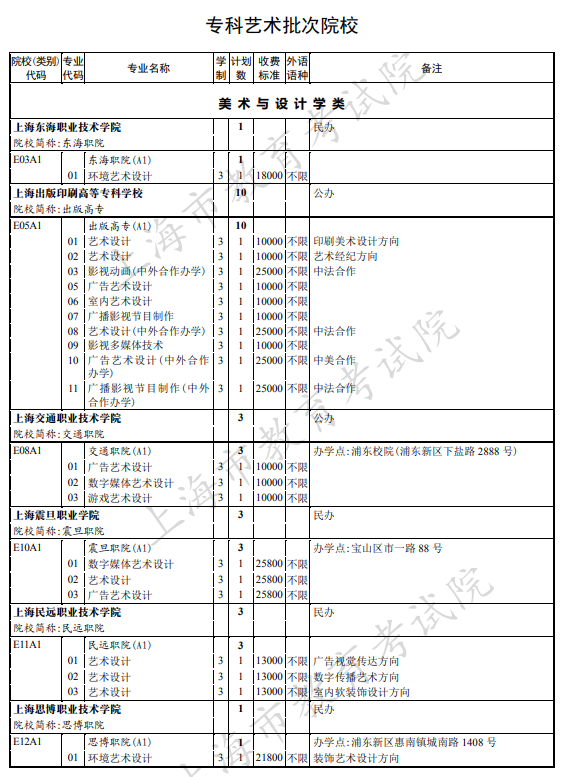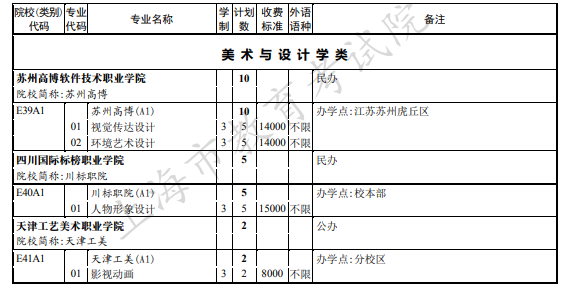 上海2021年专科艺术批次征求志愿招生计划 时间:2021-08-08 15:29 招生计划 上海市2021年专科艺术批志愿尚未招满,须进行征求志愿,下面是各院校的征求志愿招生计划,供大家查阅了解。专科艺术批次征求计划