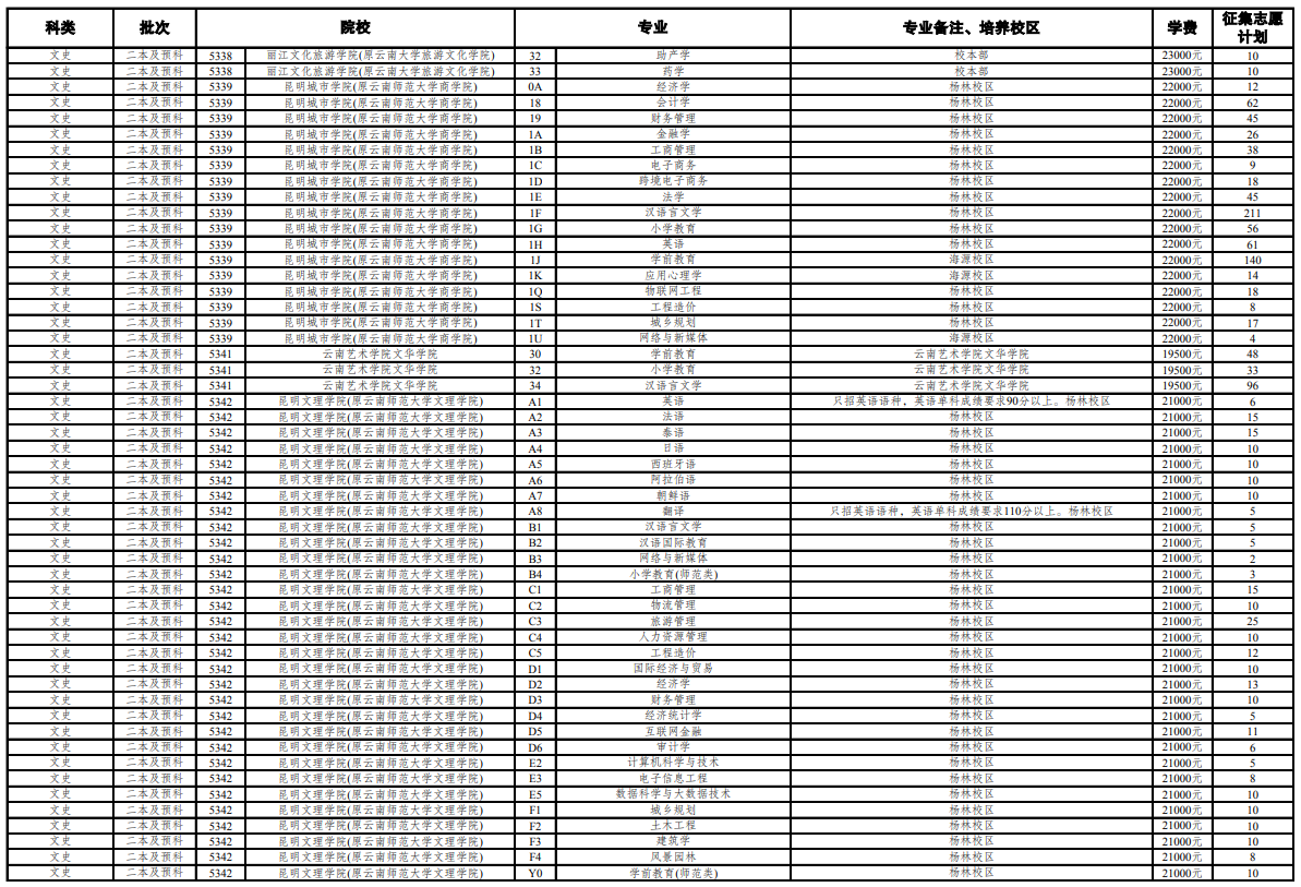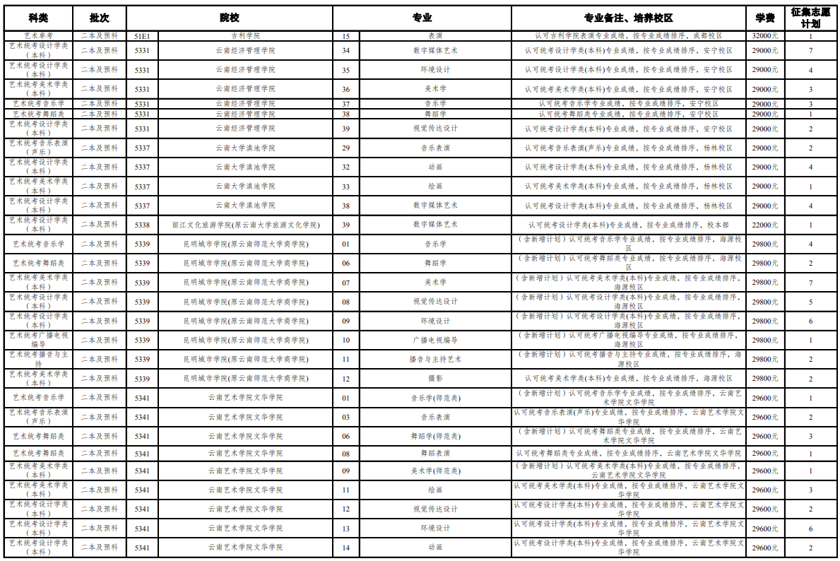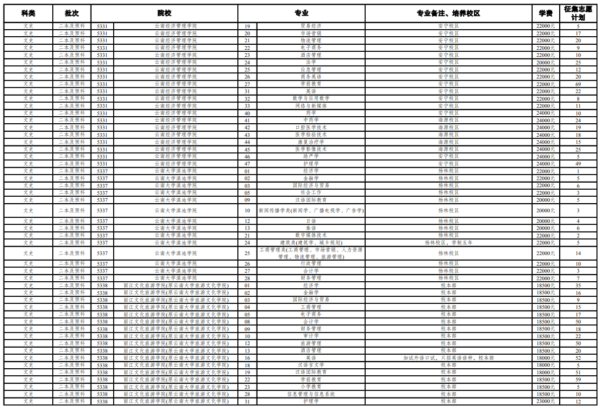 注:由于图片较多,本篇文章篇幅有限,想要了解更多招生计划,大家可以前往云南省招考频道官网查询。