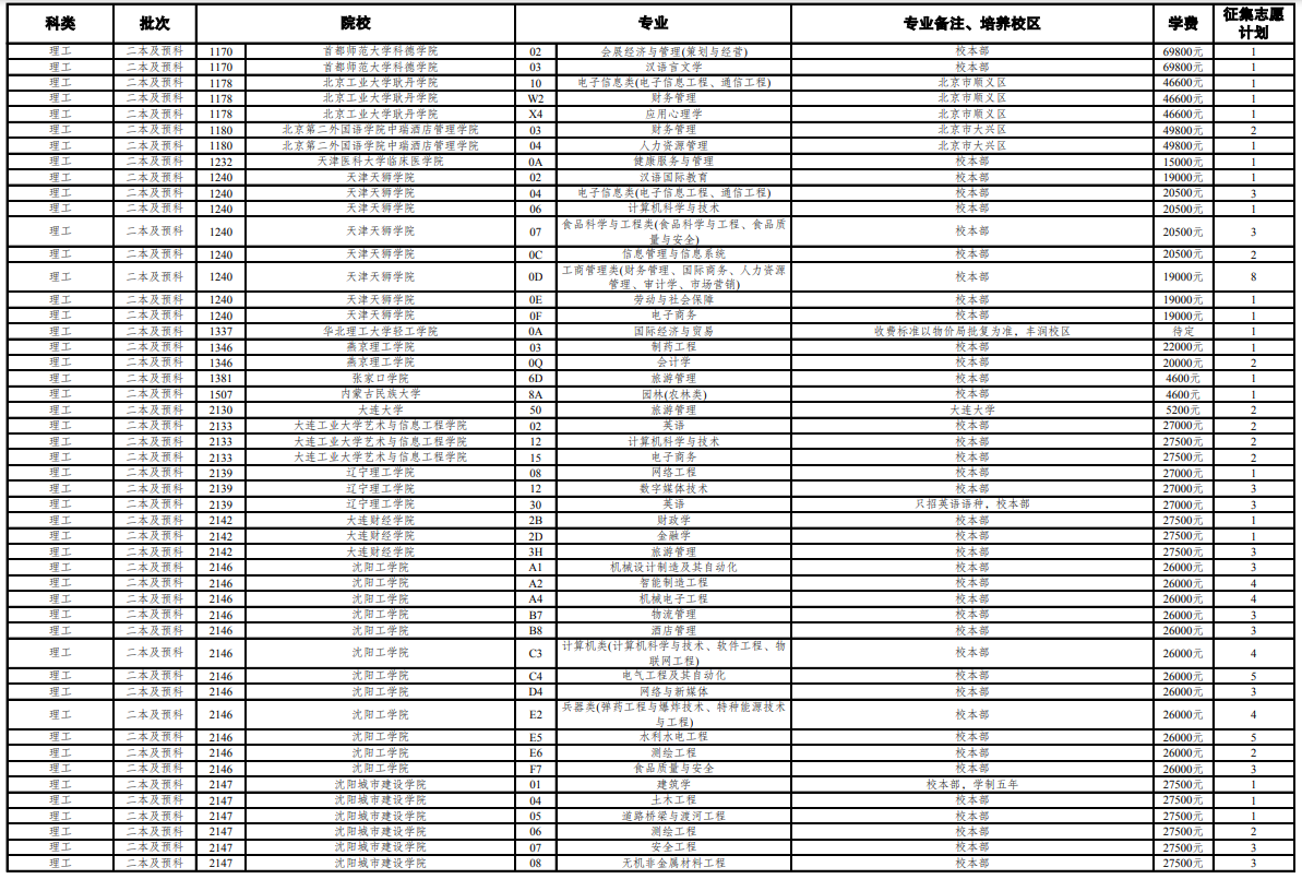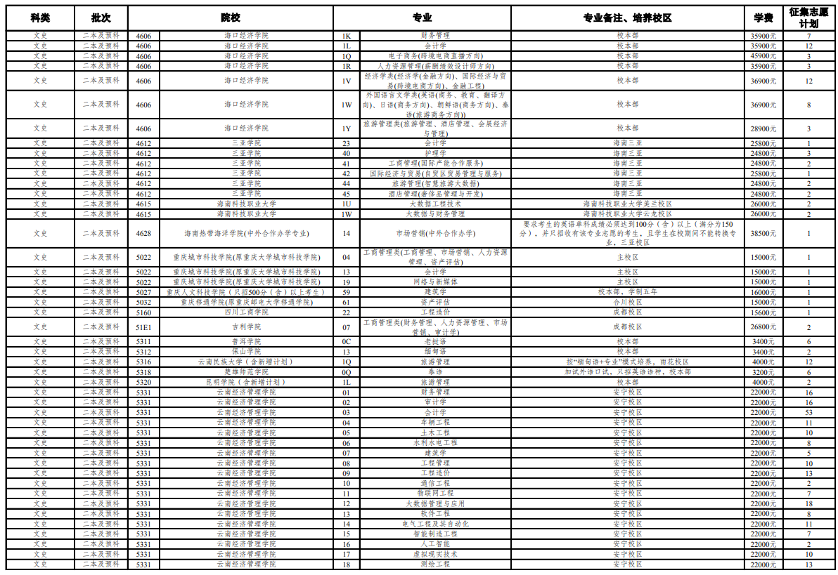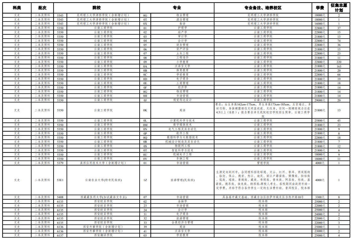 云南第七轮征集志愿招生计划