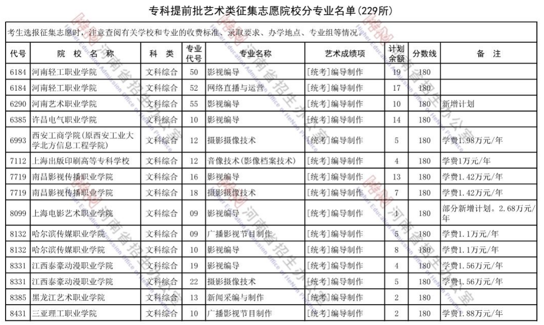 2021年河南省专科提前批的艺术类院校征集志愿招生计划已经公布了,下面是各院校的征集计划汇总,供大家查阅了解。