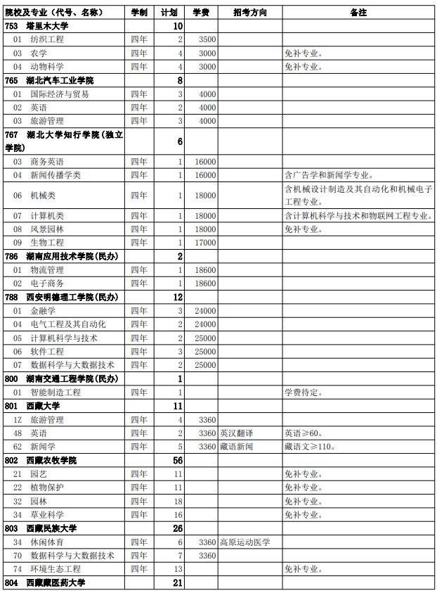 2021西藏高考第二批普通本科院校征集志愿计划 时间:2021-08-12 09:40 招生计划 2021西藏高考第二批普通本科院校批次录取工作已结束。目前,尚有部分招生计划未完成(含退档后空缺计划)。现将未完成招生计划的院校名单及计划予以公布。2021西藏高考第二批普通本科院校征集志愿计划