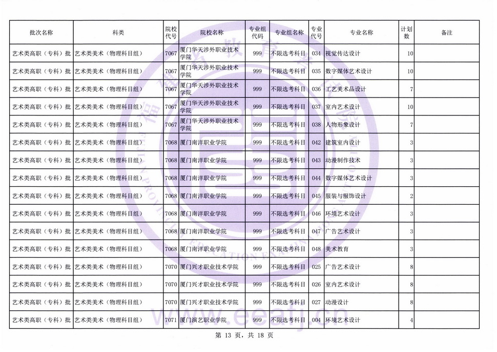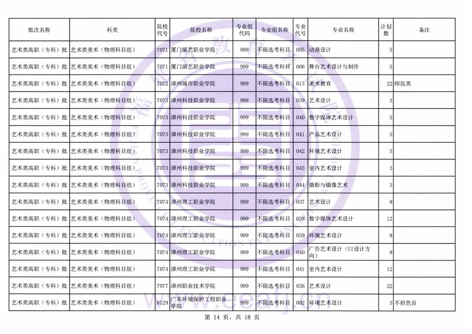 福建2021年艺术类高职(专科)批第二次征求志愿招生计划 时间:2021-08-17 09:29 招生计划 2021年福建省艺术类高职专科批次的第二次征集志愿截止至8月17日的18点,希望大家抓紧时间填报,下面是各院校的征集志愿招生计划,供大家查阅。艺术类高职(专科)批第二次征求计划