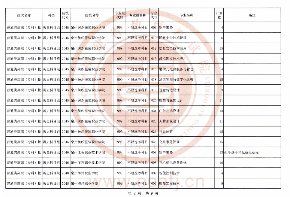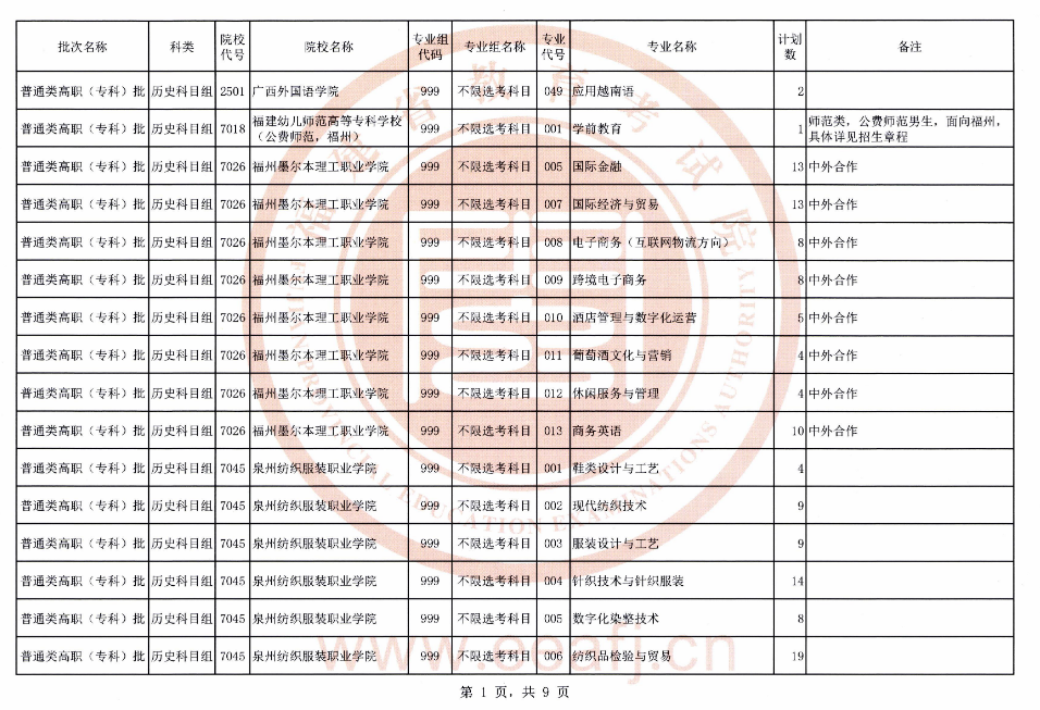 福建2021普通类高职专科批历史科目组第二次征求志愿招生计划 时间:2021-08-18 08:47 招生计划 2021年福建省普通类高职专科批次的历史科目组的第二次征集志愿时间为8月18日的8-18点,下面是各院校的征集志愿招生计划,供大家查阅。高职专科批历史科目组第二次征求计划