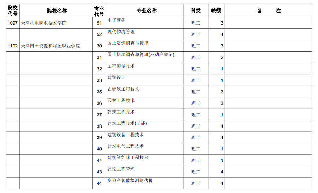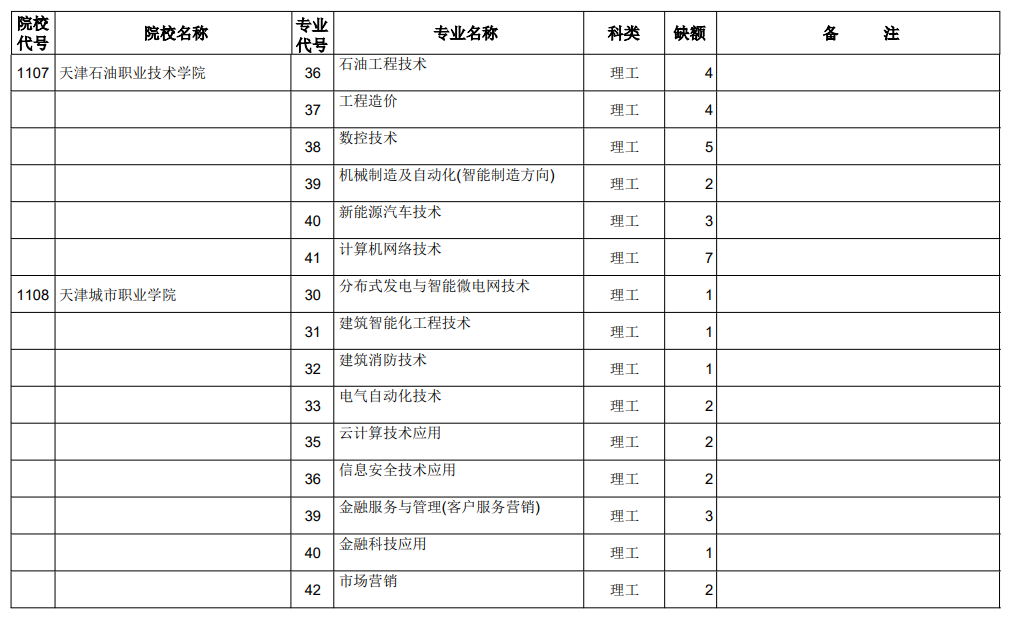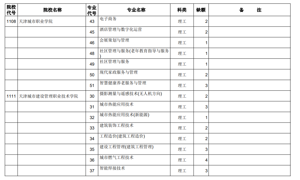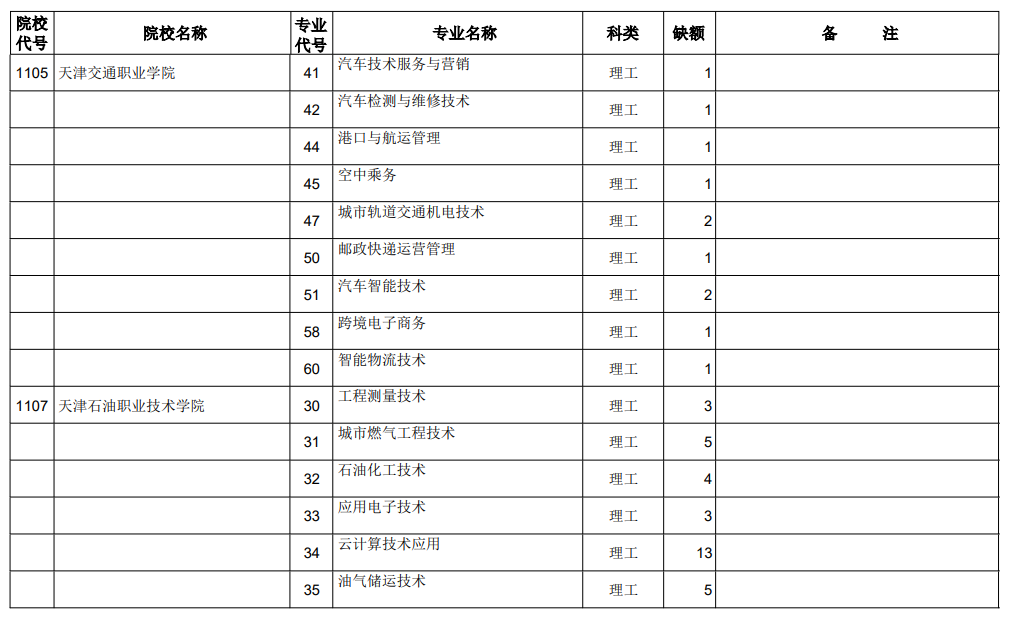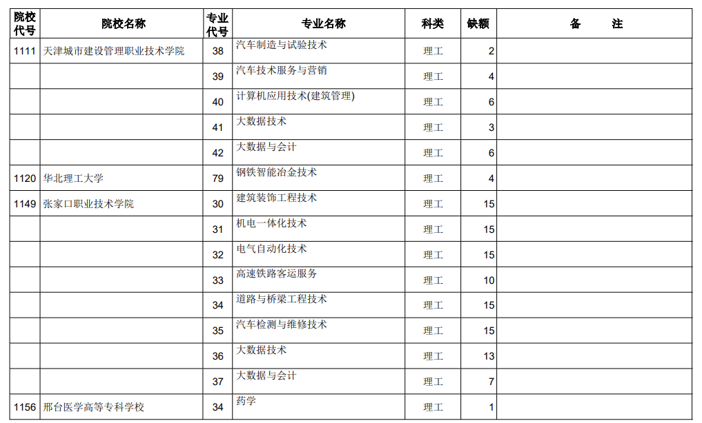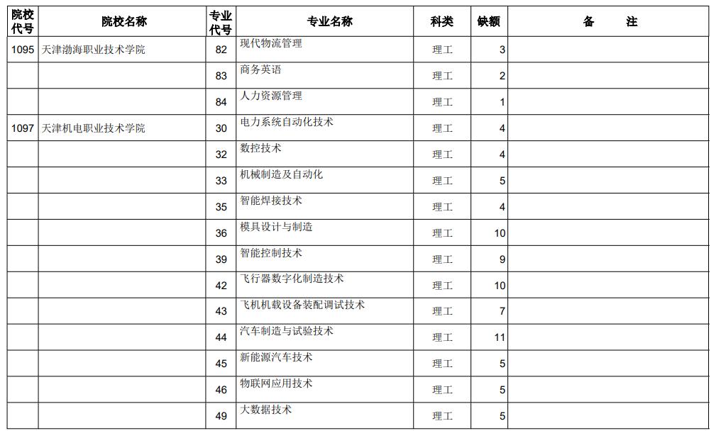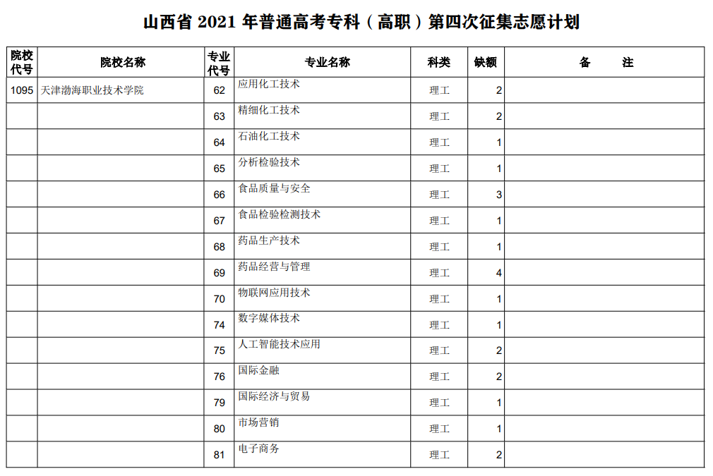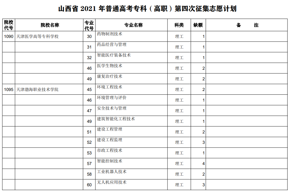 山西省2021年专科最后一次征集志愿招生计划(理工类)