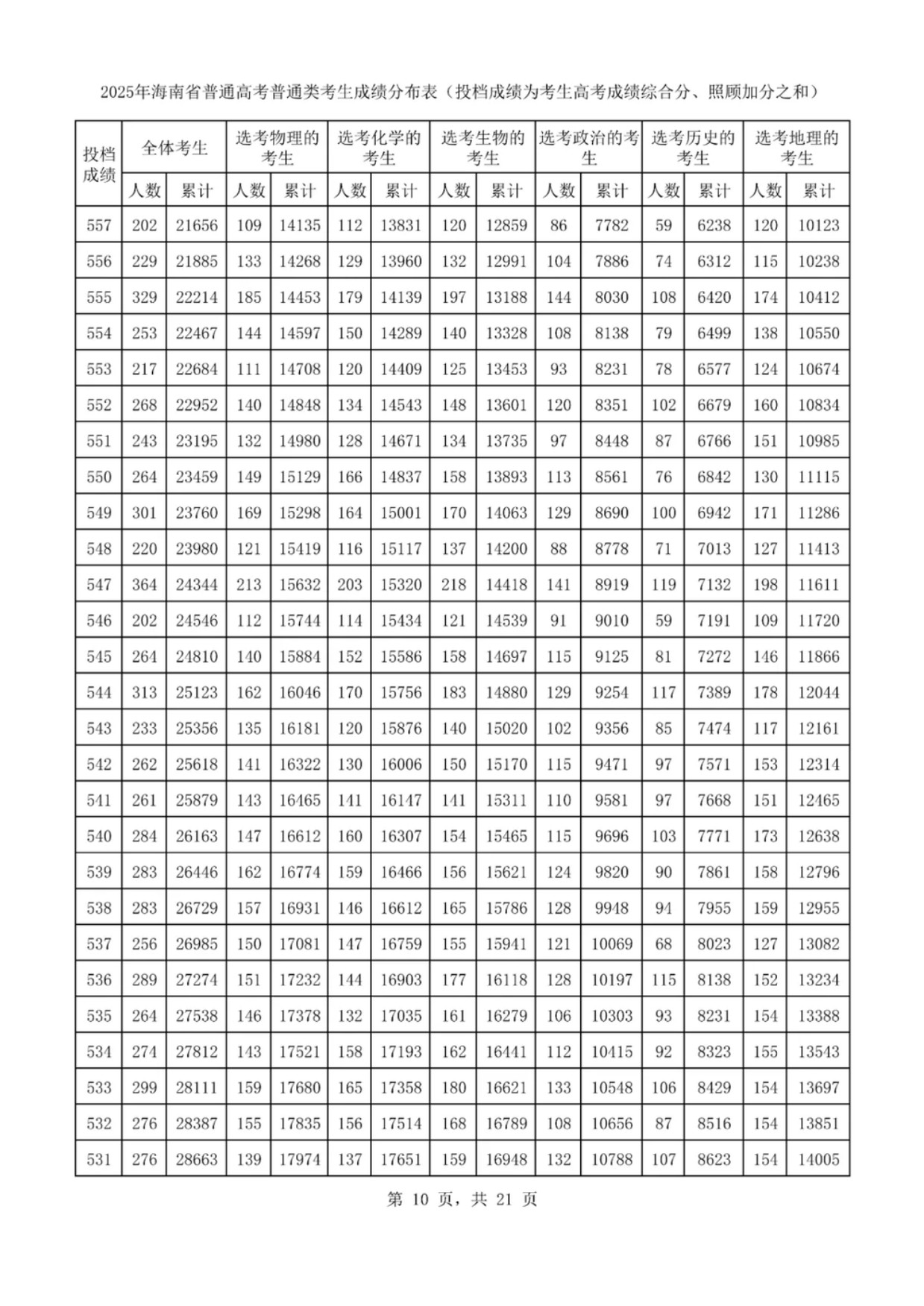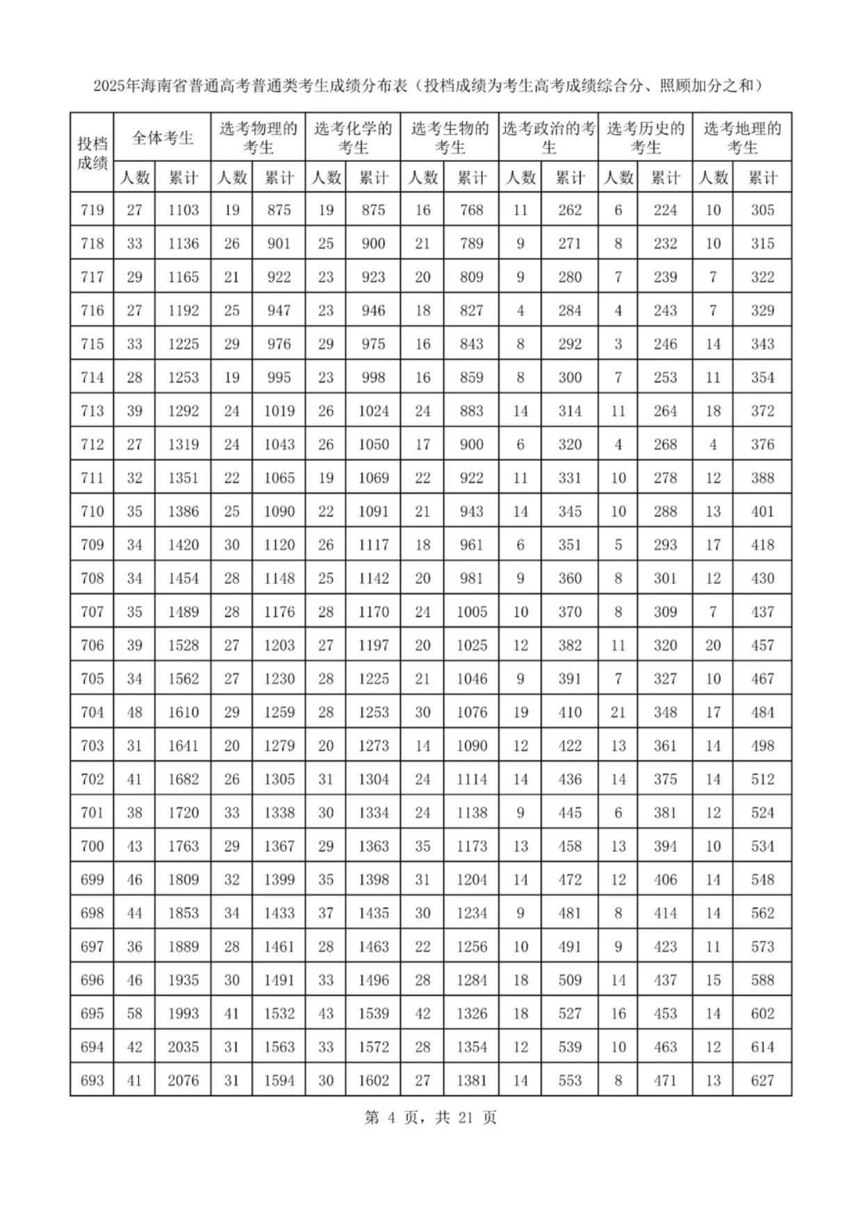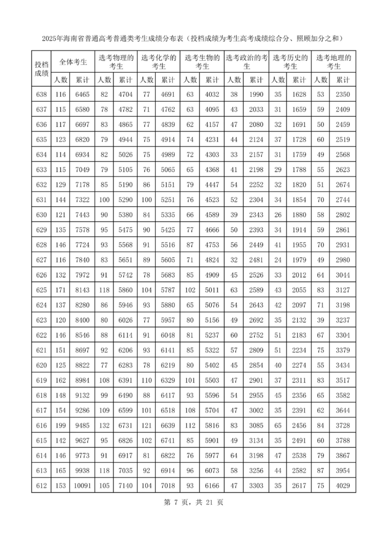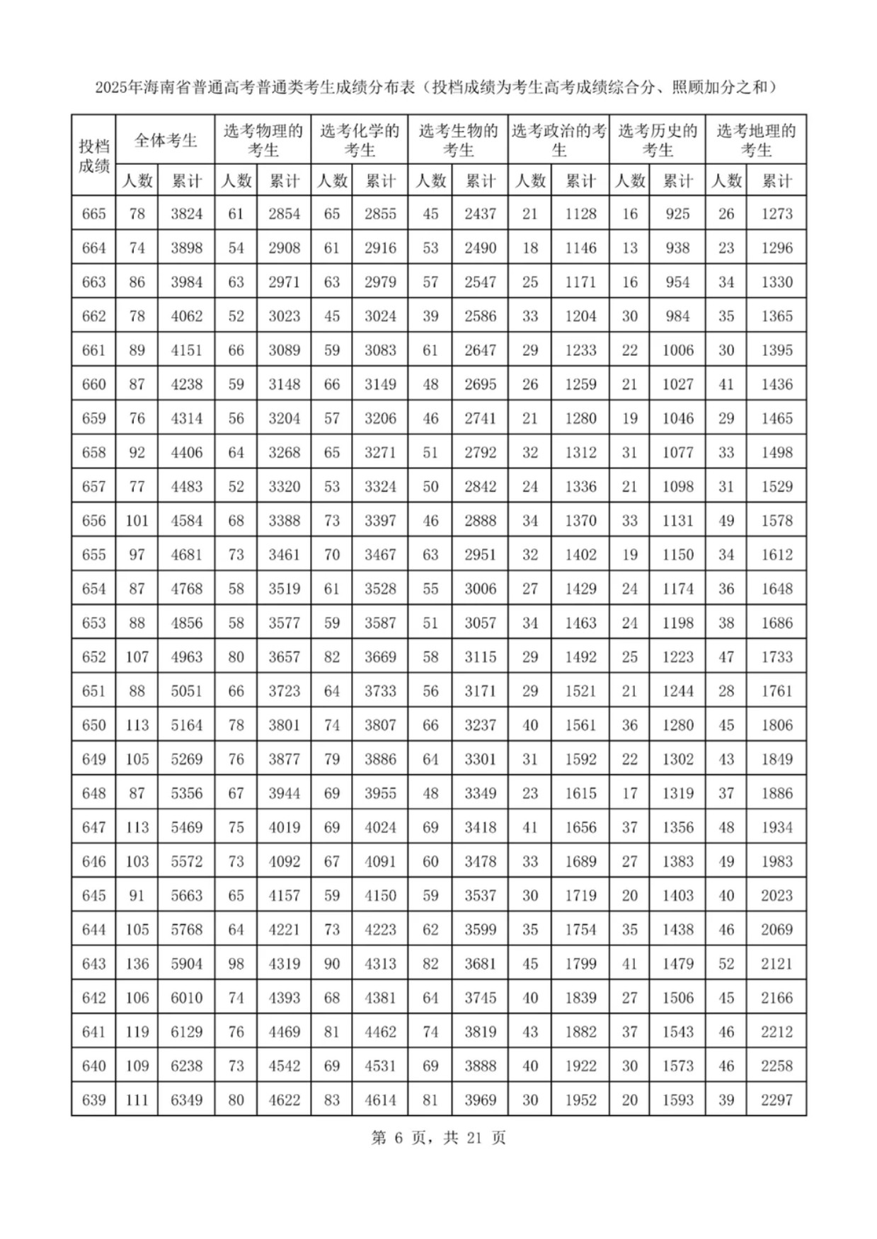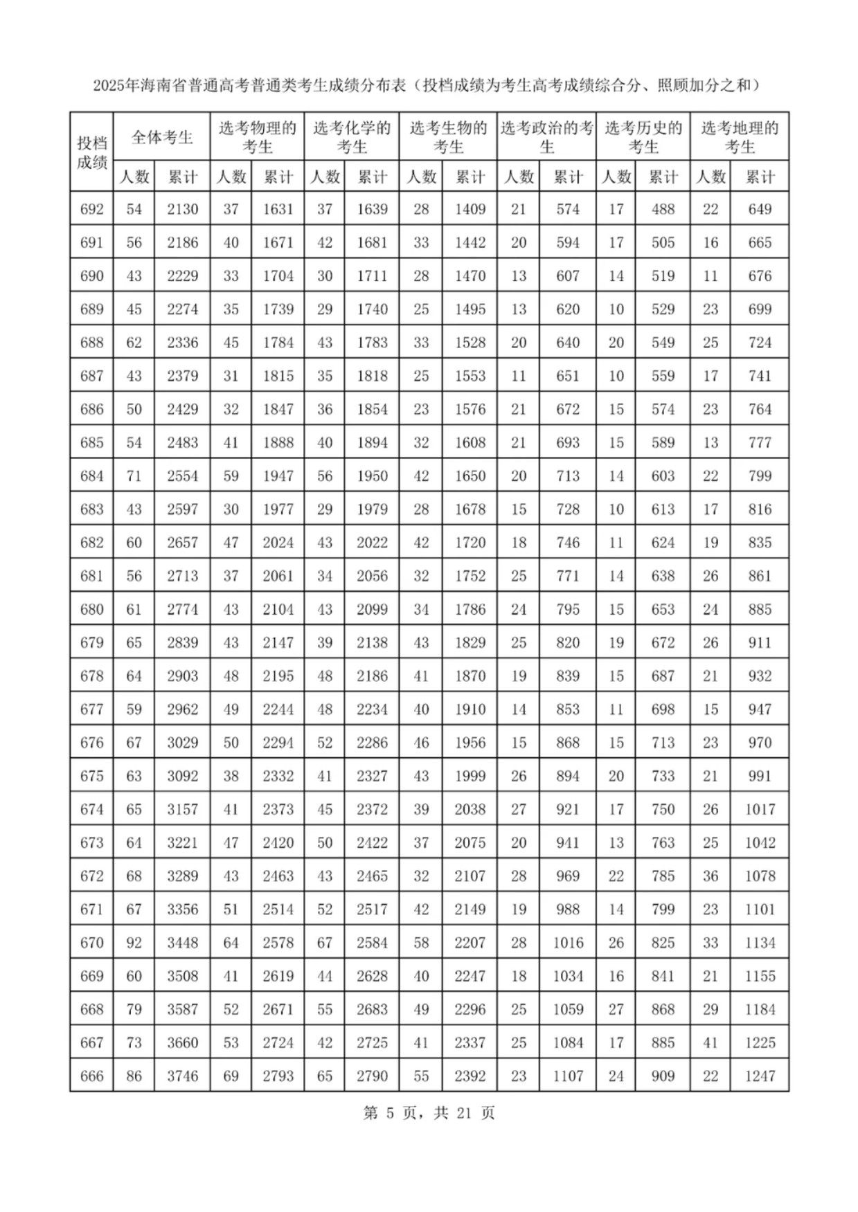 海南高考一分一段表2025