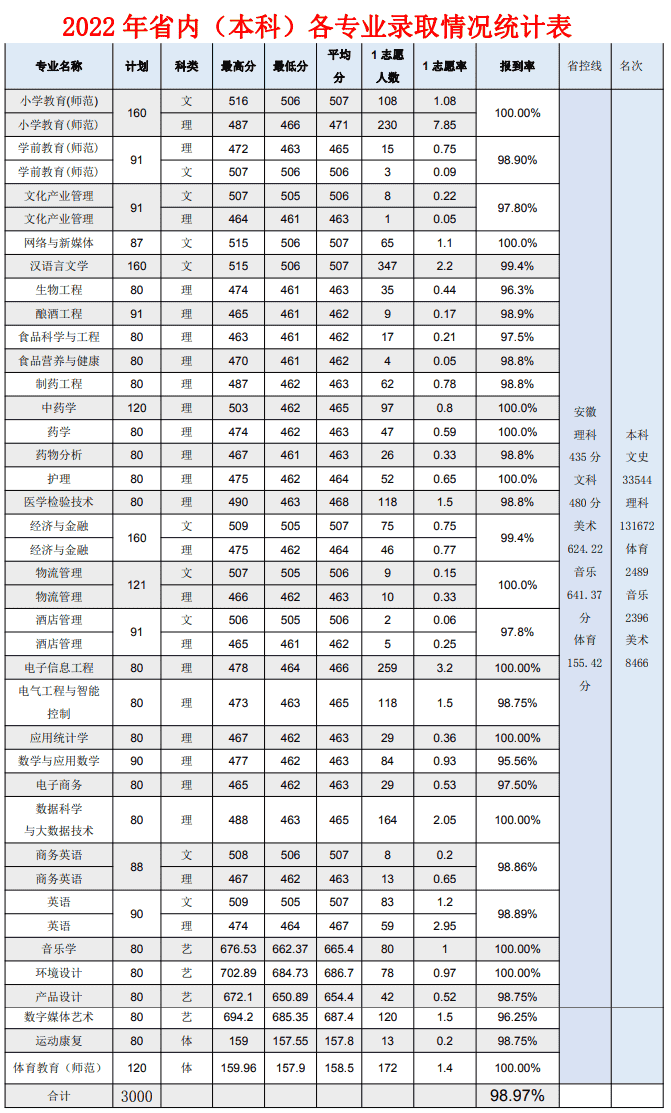 2022亳州学院历年录取分数线2023参考(含各专业录取分数线)
