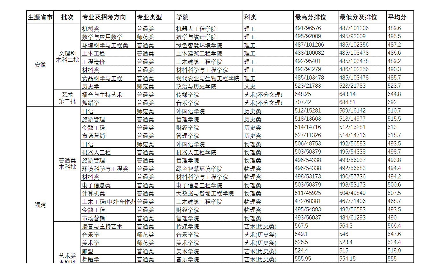 2022长江师范学院历年录取分数线2023参考(含各专业录取分数线)