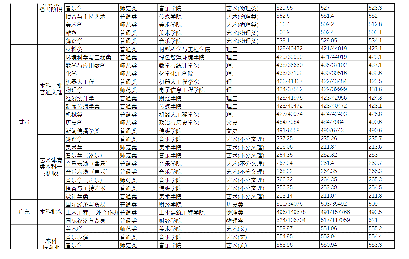 2022年各省(自治区、直辖市)普通招生录取分数统计